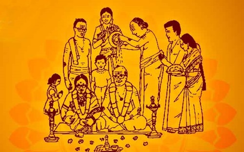 ஆனால், இந்து சமயத்தில் ஆண்மகன் ஒருவர் திருமணத்திற்குப் பிறகு, திருமணம் போன்று பத்து விழாக்களைச் செய்திட வேண்டும் என்று வலியுறுத்தப்படுகிறது. அவை;