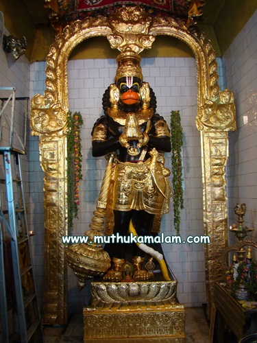 இக்கோயிலின் விமானத்தில் சுந்தர காண்டத்தின் 64 காட்சிகள் சிற்பங்களாக அமைக்கப்பட்டிருக்கின்றன. இக்கோயிலில் இருக்கும் ஆஞ்சநேயர் போர்க்கோலத்தில் இருப்பதால் கோயிலின் மகாமண்டபத்தில் அவரது துணைவர்களான நளன், நீளன், அங்கதன், குமுதன், சுக்ரீவன், ஜாம்பவந்தன், ஜிதன், ஜுவிதன் என எட்டு பேர்களின் உருவச்சிலைகளும் இடம் பெற்றிருக்கின்றன. கோயில் வளாகத்தில் இராமர், சீதை, இலட்சுமணர் சிலைகளும், கோயிலின் சுற்றுப்பகுதியில் இலட்சுமி, சரஸ்வதி சிலைகளும் அமைக்கப்பட்டிருக்கின்றன.