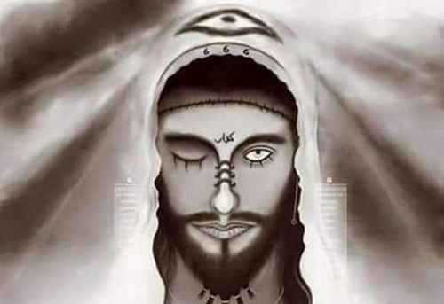 முகத்தில் ஒற்றைக்கண்ணும் நெற்றியில் இறைமறுப்பாளன் வாசகமும் பூத்தன.