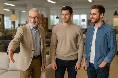 ஒரு நடுத்தர வயதுக்காரனும் ஒரு சிறிய வயதுக்காரனும். இலேசான தயக்கத்தோடு நான் அவர்களை வரவேற்றேன். ஒரு வியாபாரியின் கண்கள் இன்னும் என்னில் முழுவதுமாக விழித்துக் கொள்ளவில்லை என்று இதற்கிடையில் நான் புரிந்து கொண்டிருந்தேன்.”சோபா செட் வேணும். டைனிங் டேபிளும் நாற்காலிங்களும் வேணும். ஒரு கட்டிலும் ஒரு நல்ல ஷெல்ஃபும்”