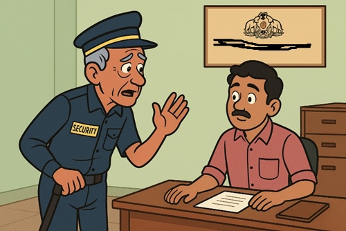 “இங்க வேல பாத்த பழைய செக்யூரிட்டிகாரனோட விஷயத்தப் பத்திப் பேச வந்திருக்கோம். மூனு தடவை நோட்டீஸ் அனுப்பியும் நீங்க வாங்கல. அதனால நேர வந்து நோட்டீஸ் தரலாம்னு வந்திருக்கோம்”. மேடத்தின் குரலில் கோபம் கலந்திருந்தது. கொஞ்சமும் எதிர்பார்க்காததால் அந்த ஆளால் உடனே பதில் சொல்ல முடியவில்லை.