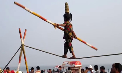 கயிற்றில் ஏறி சாகசம் செய்யும்